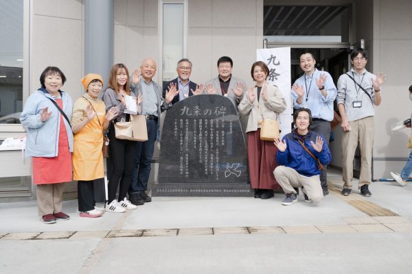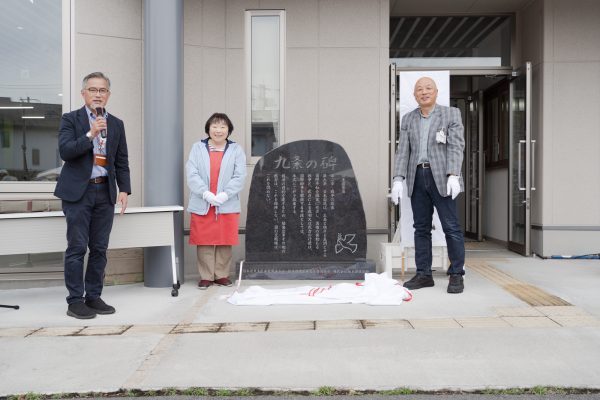 碑面に刻まれた題字「九条の碑」は、長年の組合員である佐藤さんによる書です。短い準備期間にもかかわらず、心を込めて筆をとり、その思いが永遠に石に刻まれました。書体には、平和への祈りと優しさ、そして力強い生命の息吹が感じられます。