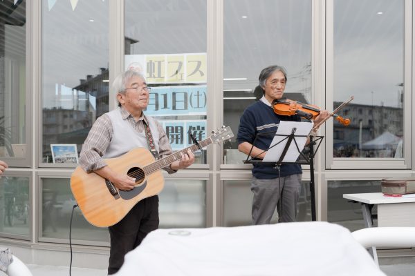 除幕式のあと、「虹フェス2025」本編が始まりました。会場には模擬店や健康チェック、医師による相談コーナー、フリーマーケットなどが並び、子どもから高齢者まで多くの人々が楽しみました。